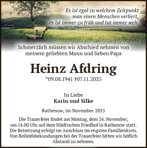 Zünden Sie eine Kerze für Heinz Afdring an und schreiben Sie Ihre ganz persönlichen Abschiedsworte.