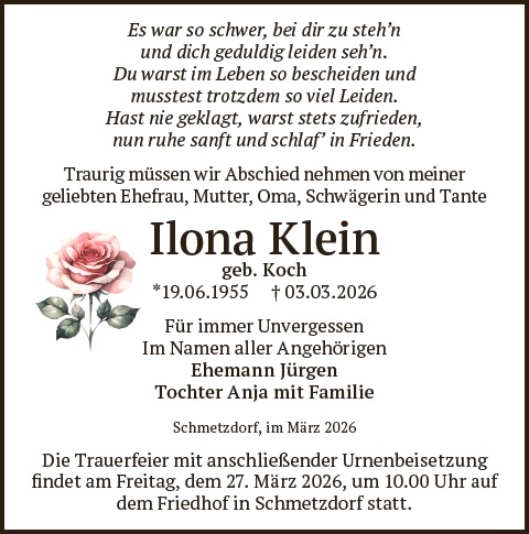Zünden Sie eine Kerze für Ilona Klein an und schreiben Sie Ihre ganz persönlichen Abschiedsworte.