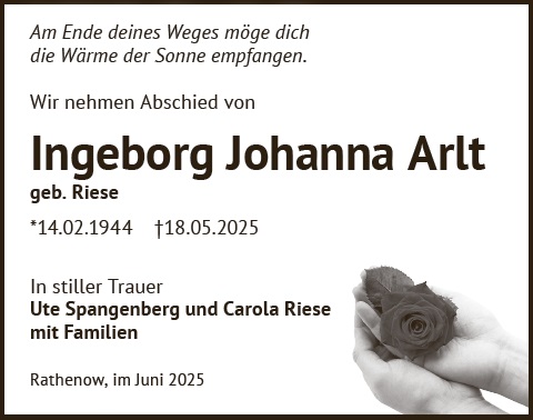 Zünden Sie eine Kerze für Ingeborg Johanna Arlt an und schreiben Sie Ihre ganz persönlichen Abschiedsworte.