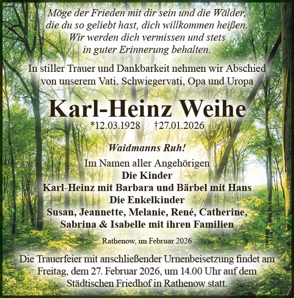 Zünden Sie eine Kerze für Karl-Heinz Weihe an und schreiben Sie Ihre ganz persönlichen Abschiedsworte.