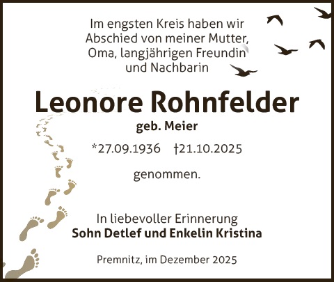 Zünden Sie eine Kerze für Leonore Rohnfelder an und schreiben Sie Ihre ganz persönlichen Abschiedsworte.