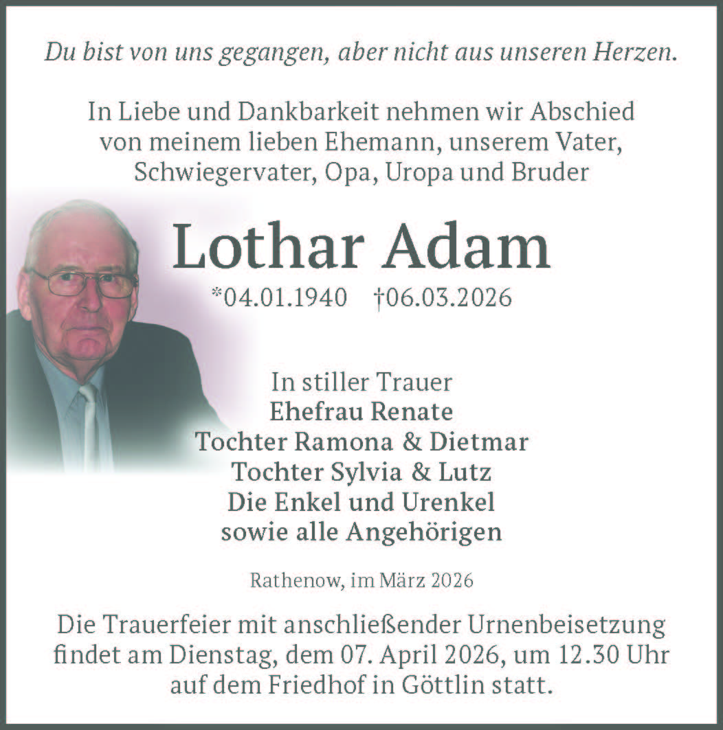 Zünden Sie eine Kerze für Lothar Adam an und schreiben Sie Ihre ganz persönlichen Abschiedsworte.