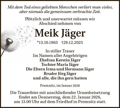 Zünden Sie eine Kerze für Meik Jäger an und schreiben Sie Ihre ganz persönlichen Abschiedsworte.